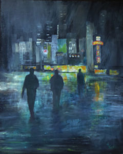 James Tucker– ‘Chicago Rainy Night’ 30×24 Acrylic on panel ITG