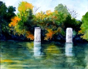 Tucker–Abandoned Bridge Pilings, South Pittsburg 11×14 Watercolor