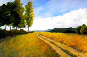 LR James Tucker–Old Farm Road 36×36 Acrylic on canvas