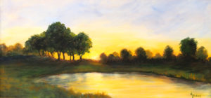 James Tucker–Sunset at the Pond 18×36 Acrylic
