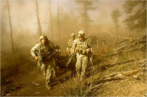 Hostile Fire– U.S. troops carry the body of Staff Sgt. Larry Rougle, who was killed when the insurgents ambushed their squad in the Korengal ValleyBy Jim / December 13, 2014